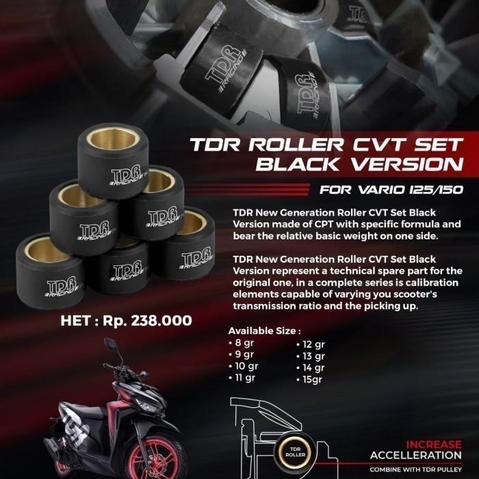 ROLLER TDR BLACK TEFLON 14 GR FOR VARIO 150-PCX 150-ADV 150-VARIO 125
