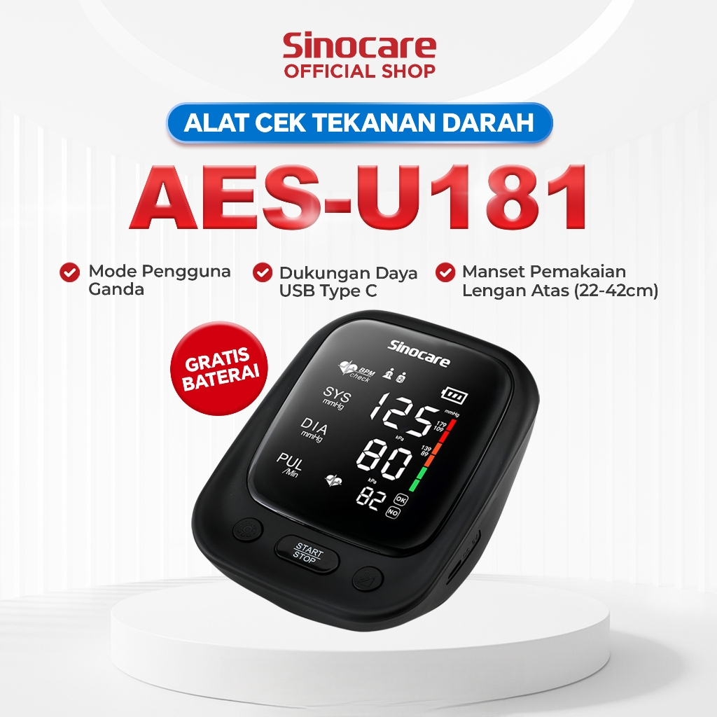 Alat Cek Tekanan Darah Otomatis Sinocare AES-U181 Tensi Meter Digital