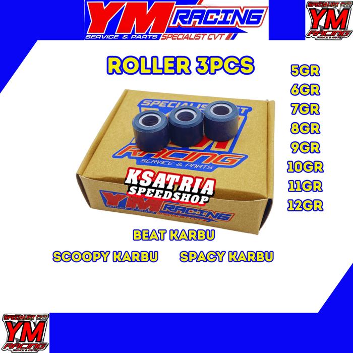 ROLLER 3PCS/BUTIR YM RACING (BEAT KARBU/SCOOPY KARBU/SPACY KARBU) | CVT | MOTORCYCLE - BEAT KARBU, 5GRAM
