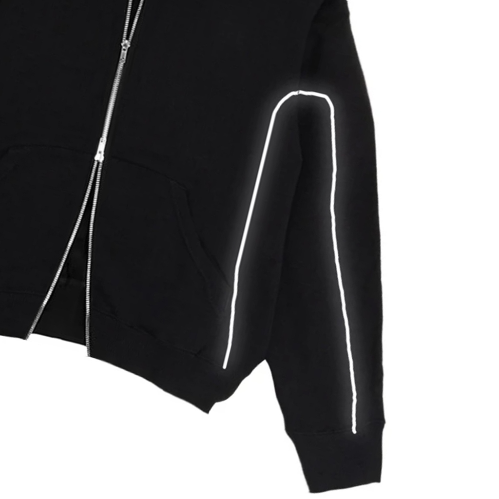 Gadabang Hoodie Boxy Double Zipper List Menyala Reflective Hitam
