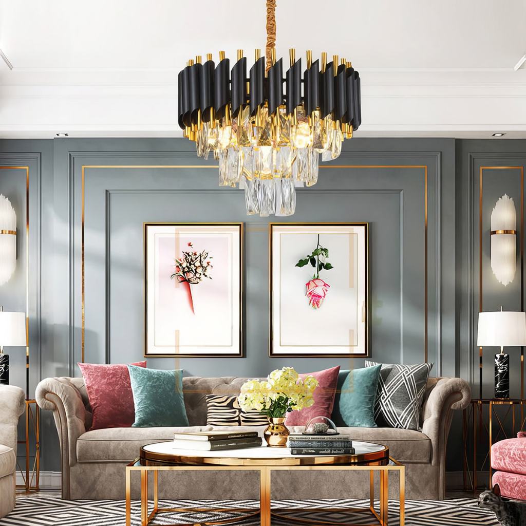 CELOGLO 40cm Lampu Gantung Kristal Aesthetic dengan Lampu Sumber, Lampu Hias Gantung