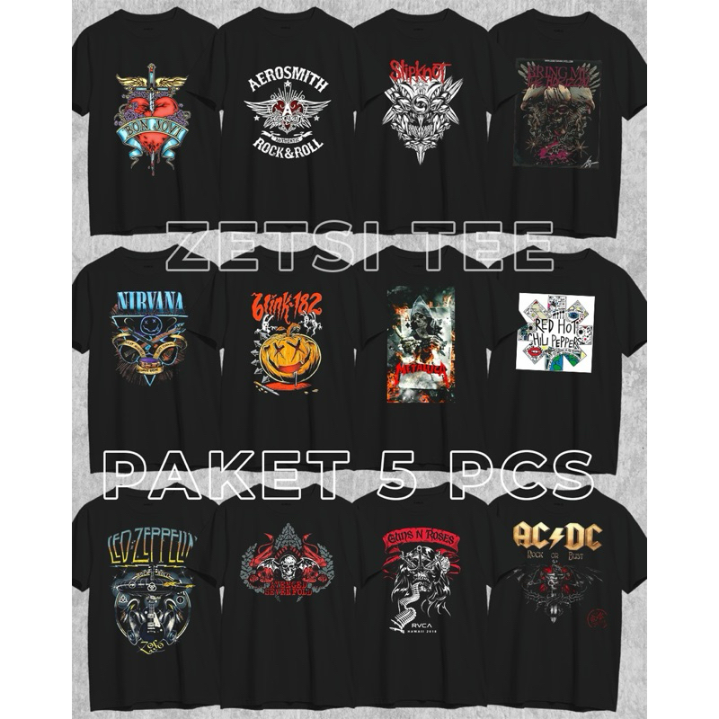 5PCS 100K Kaos Distro Band & Non Band Motif Random