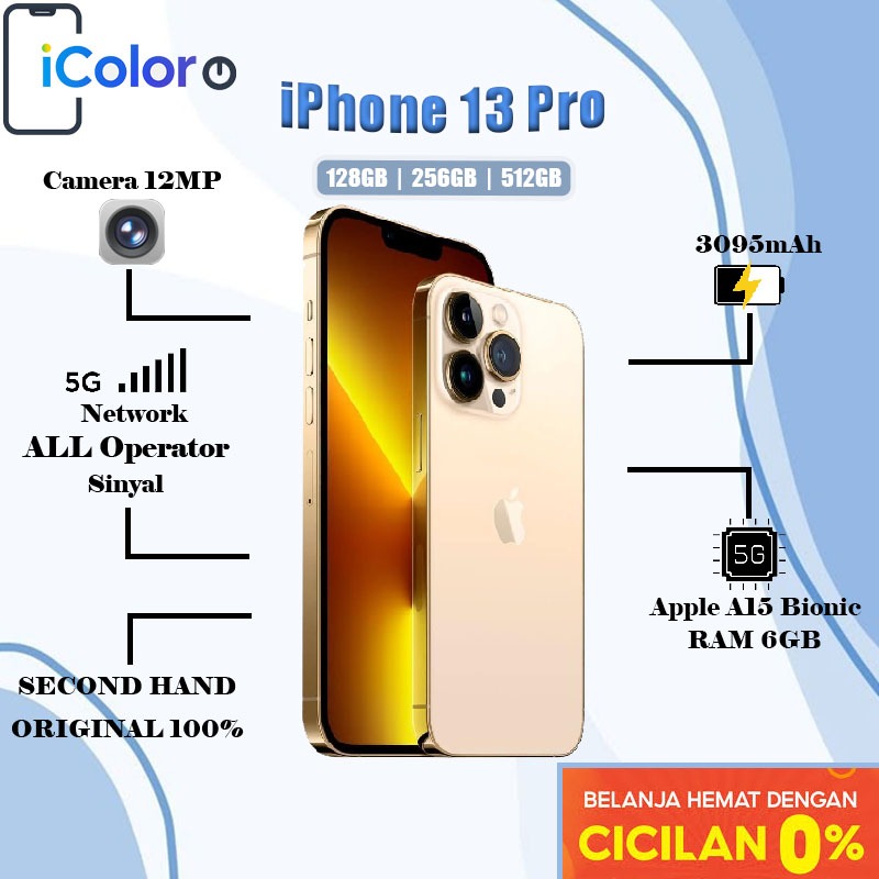 iPhone 13 Pro Max 128GB 256GB 512GB Secondhand Normal Full set Original 100 PERSEN ex internasional Apple