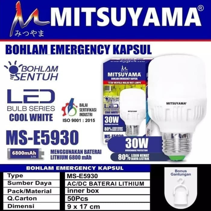Lampu Bohlam LED Emergency 30 watt MS-E5930 Otomatis Nyala saat Mati Lampu