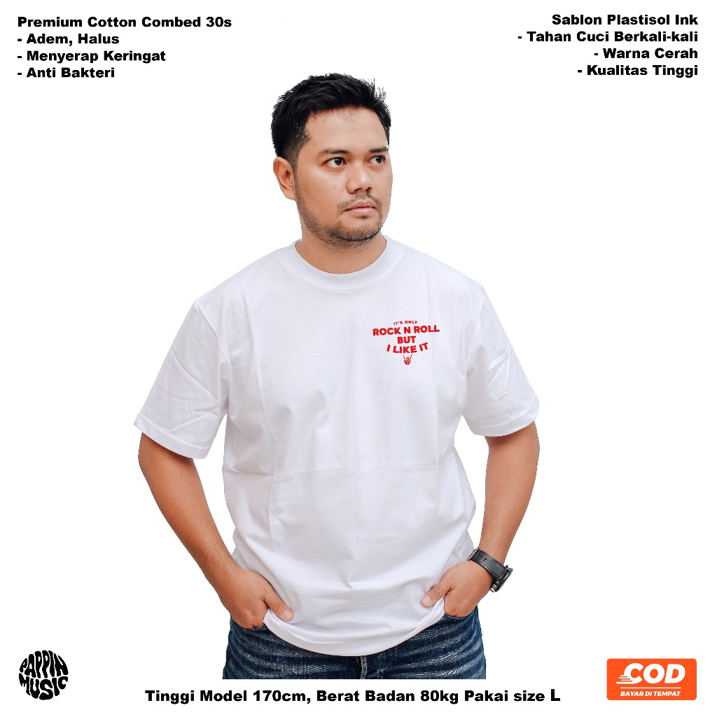 KAOS BAND BEST QUALITY, KAOS MUSIK, KAOS RNR I LIKE IT PUTIH—PLASTISOL—