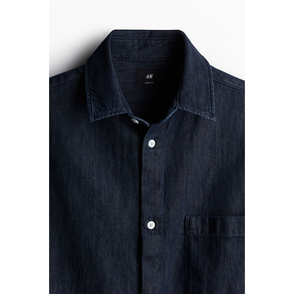 H&M Pria Loose Fit Denim Shirt 1244405002_Blue