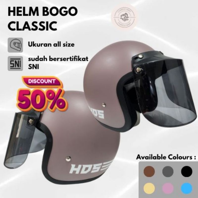 [PROMO] Helm Bogo Dewasa Classic Retro HDS HELMET Helem Half Face Cowok Cewek Hijab SNI
