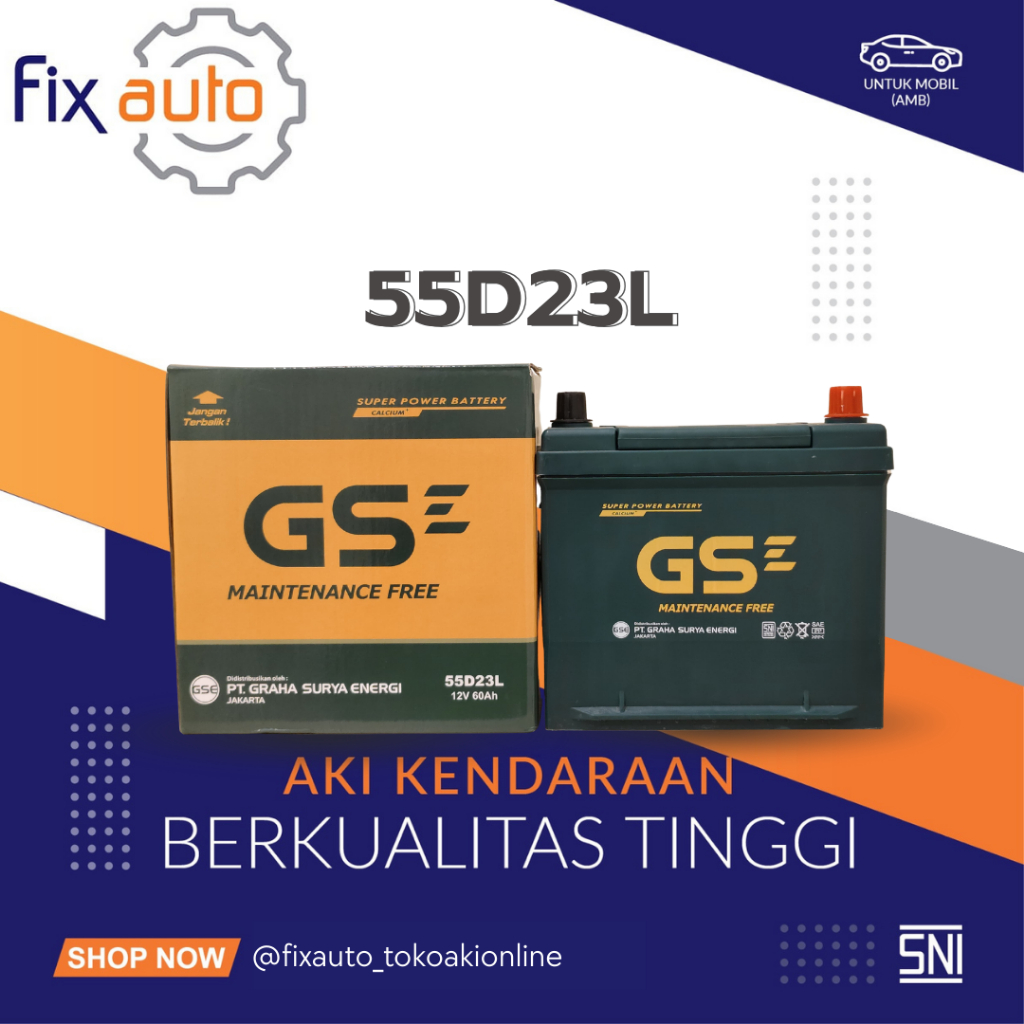 Aki Mobil Kering GSE 55D23L 60Ah 12V Accu MF Super Power Battery
