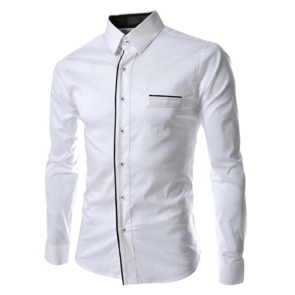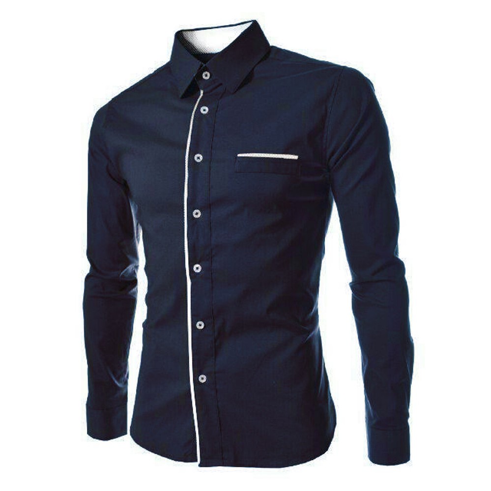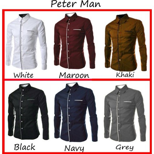Hem Peter Kemeja Polos Pria Lengan Panjang Slimfit Kemeja Kerja Formal Cowok Warna Putih Hitam Navy