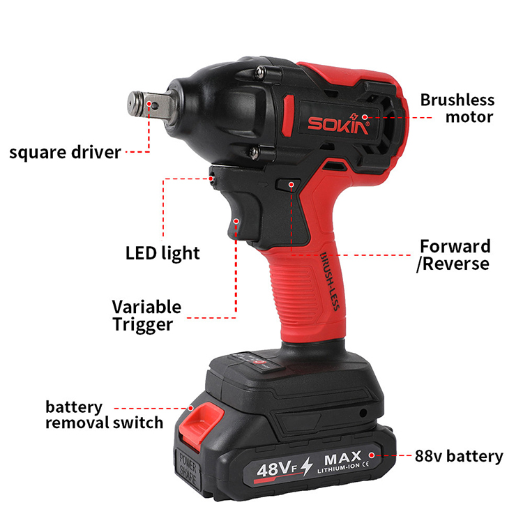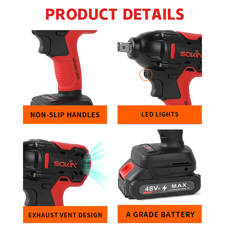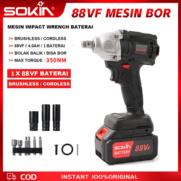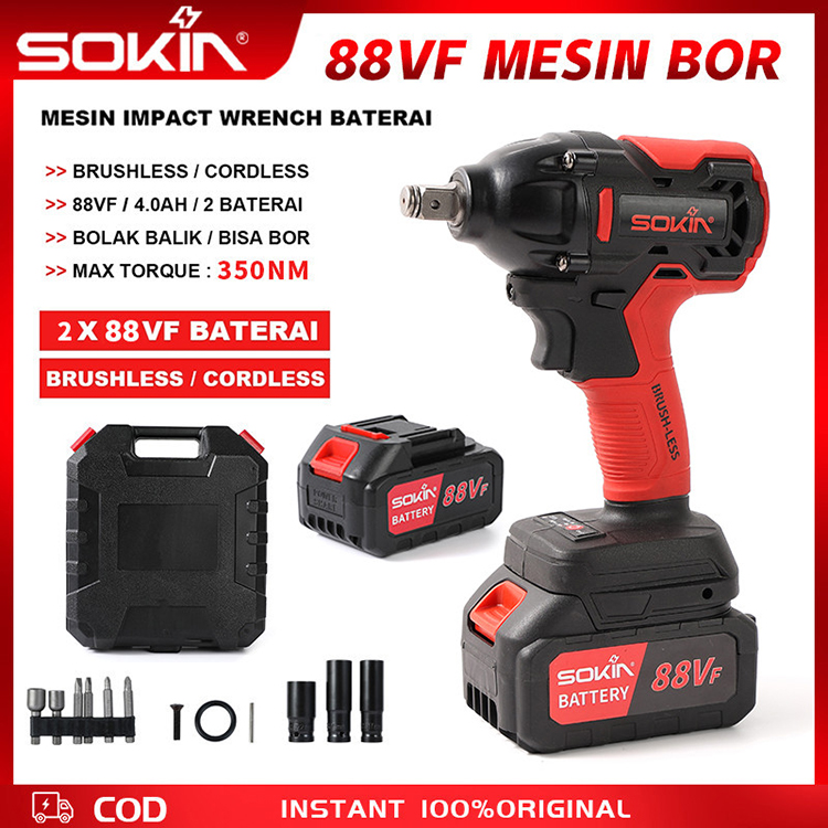 Brushless Mesin Bor Impact Baterai 13mm Cordless Impact Wrench Impact 2baterai Impek Baterai Torsi Besar 350NM