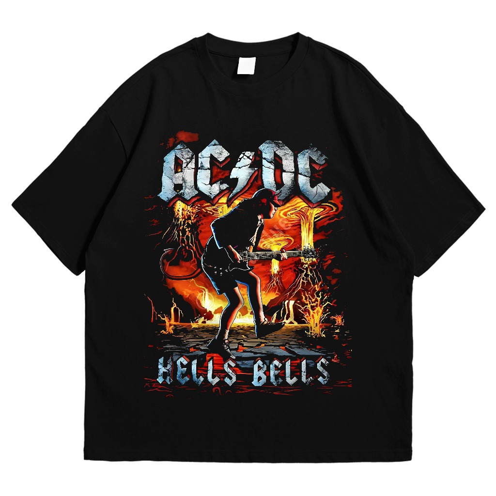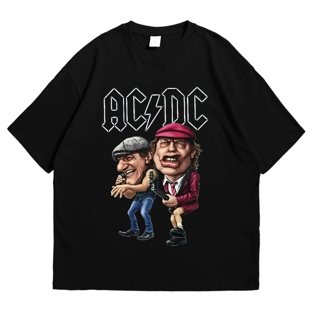 Baju Kaos Band ACDC Hitam Classic Rock T-shirt Pria Wanita Uni Cotton Combed Black 24s