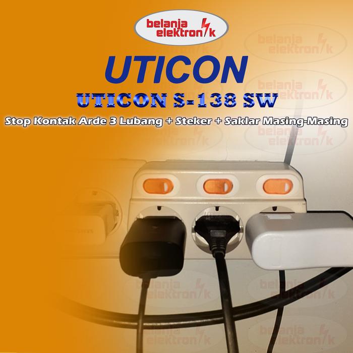 STOP KONTAK ARDE 3 LUBANG DENGAN SAKLAR TERSENDIRI UTICON S-138 SW