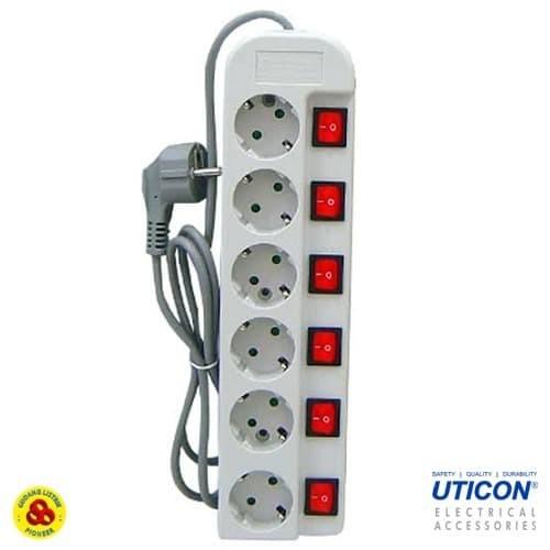 UTICON STOP KONTAK ARDE 6 LUBANG + SAKLAR TERSENDIRI + KABEL ST-1682SW