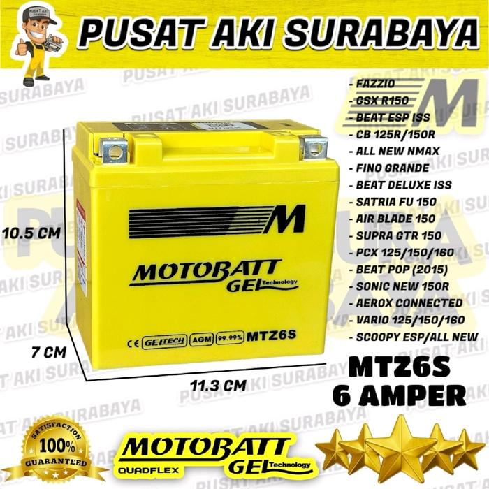BERGARANSI AKI MOTOBATT MTZ6S GEL ACCU SEPEDA MOTOR KERING VARIO PCX CBR SATRIA FU NMAX GTZ6V YTZ6V GTZ7S - MTZ6S, TANPA BUBBLE WRAP
