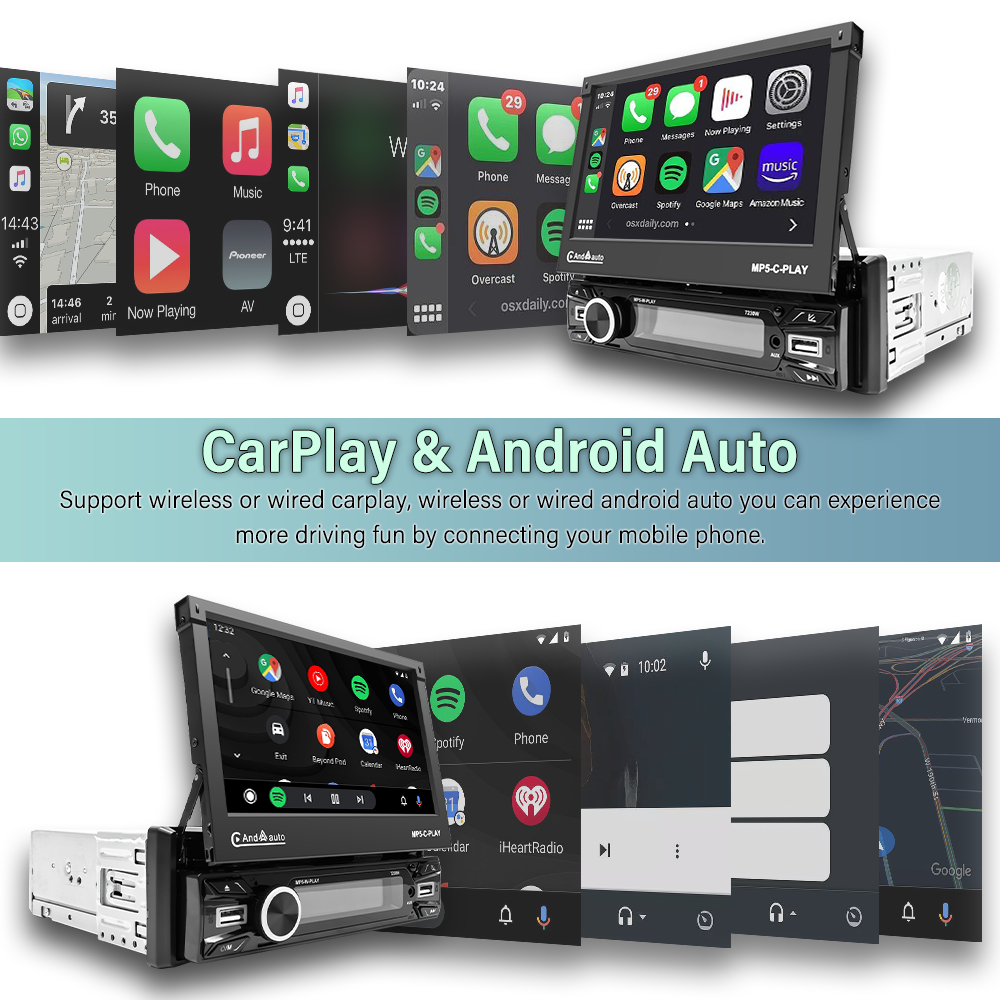 PROMO 7 Inci Pemutar MP5 Multimedia Video 1Din dengan Android Auto & CarPlay Nirkabel, Layar Sentuh yang Dapat Ditarik
