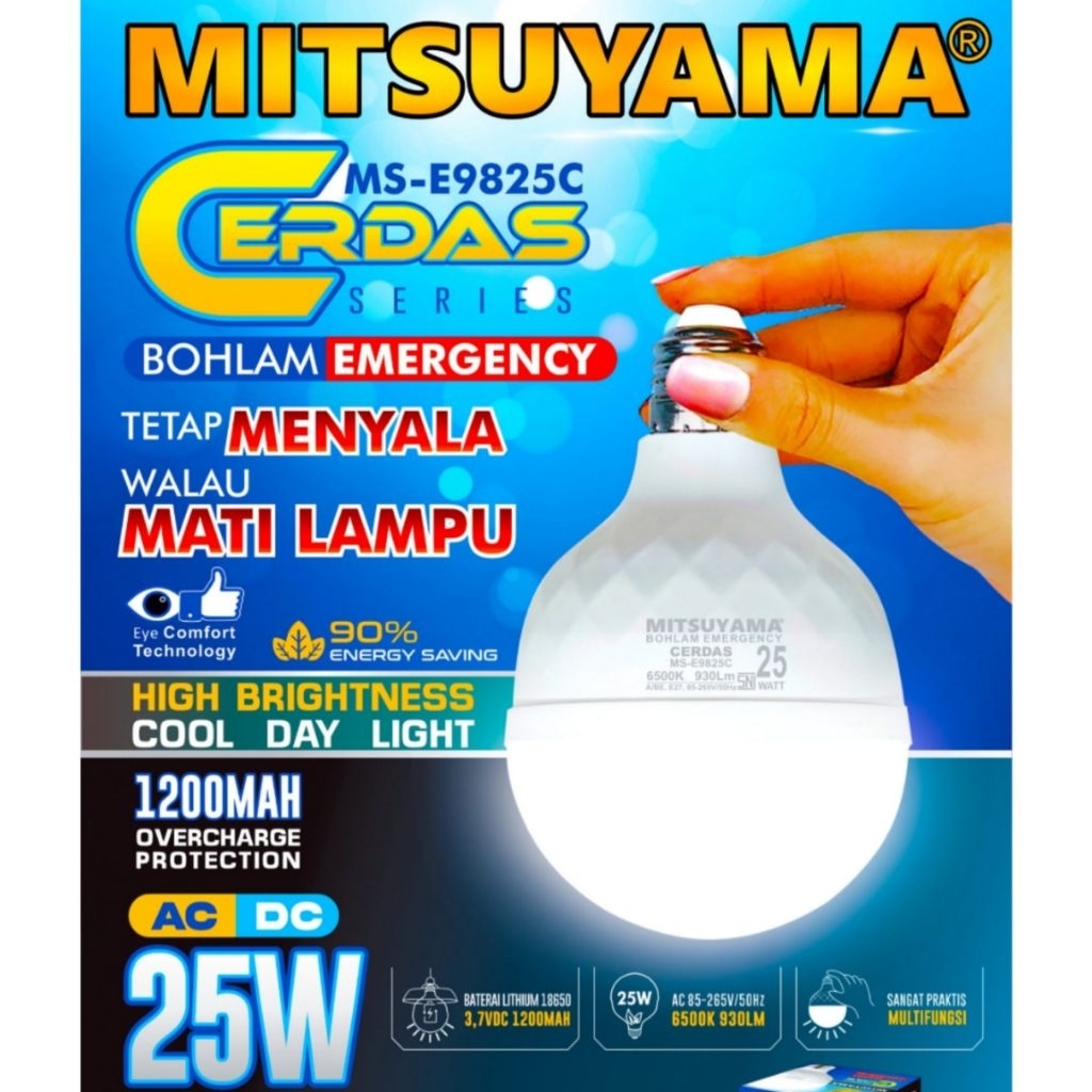 Lampu Emergency Mitsuyama 25-35 Watt CERDAS Series Otomatis Nyala Saat Mati Lampu (Bohlam Emergency LED)