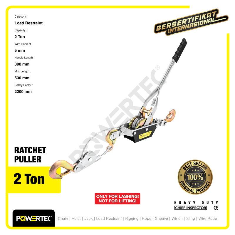 POWERTEC Ratchet Puller 2 Ton x 2.2 Meter Tracktang Kodokan Puller Grip