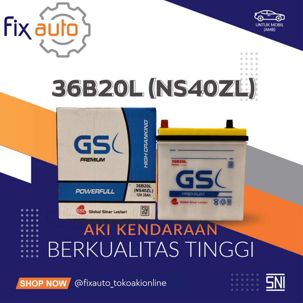Aki Mobil Basah GSL Premium NS40ZL 36B20L Powerfull 35Ah 12V