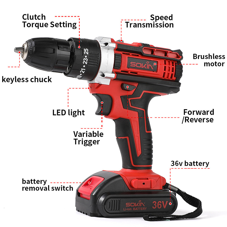 Mesin bor baterai 36VF / Baterai bor/10mm Bor 2baterai/Bor baterai murah berkualitas/Bor listrik /Bor listrik baterai/Ba