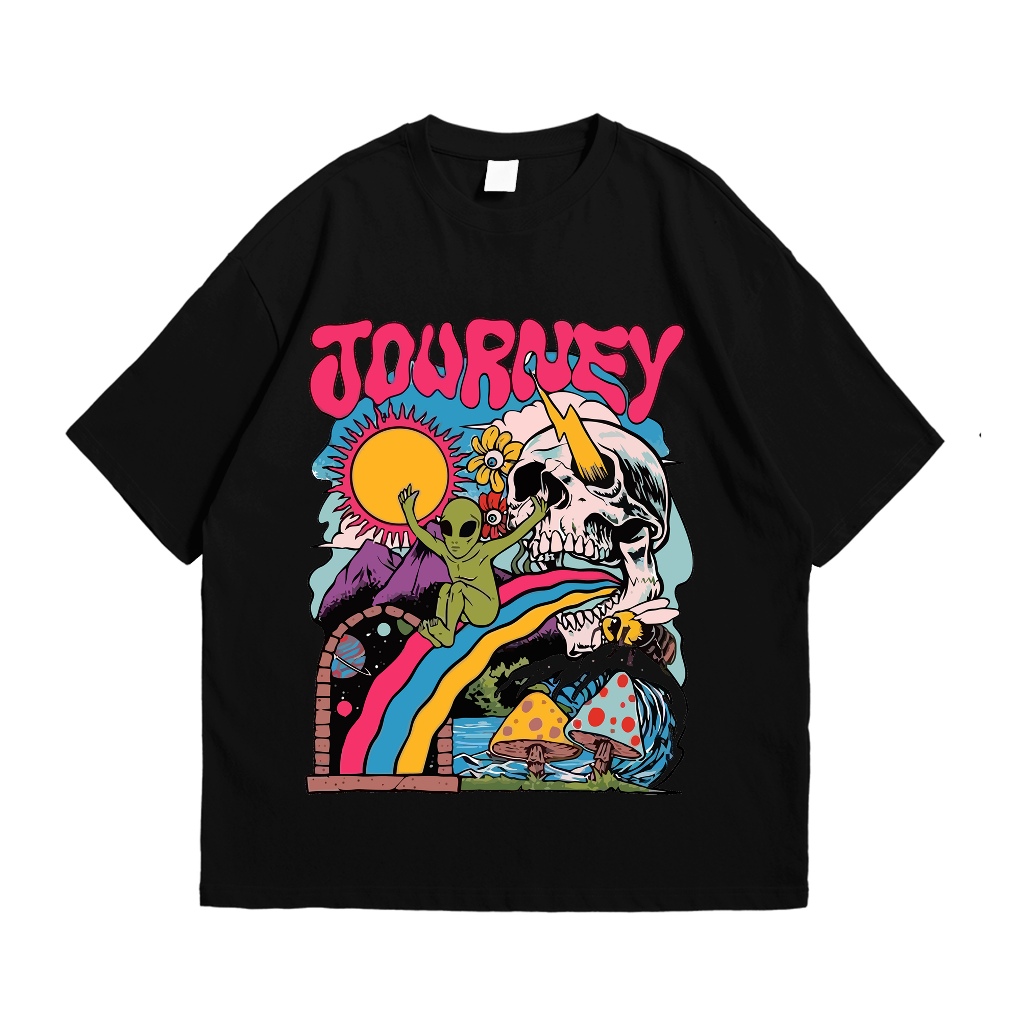 Baju Kaos Band Musik Journey T-shirt Pria Wanita Uni Cotton Combed Black 24s