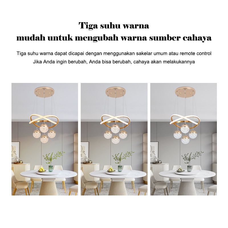 Lampu Gantung Kristal Minimalis 3 warna LED Remote Control Lampu Hias Gantung Mewah Nordik Ruang Makan Ruang Tamu Kamar Tidur