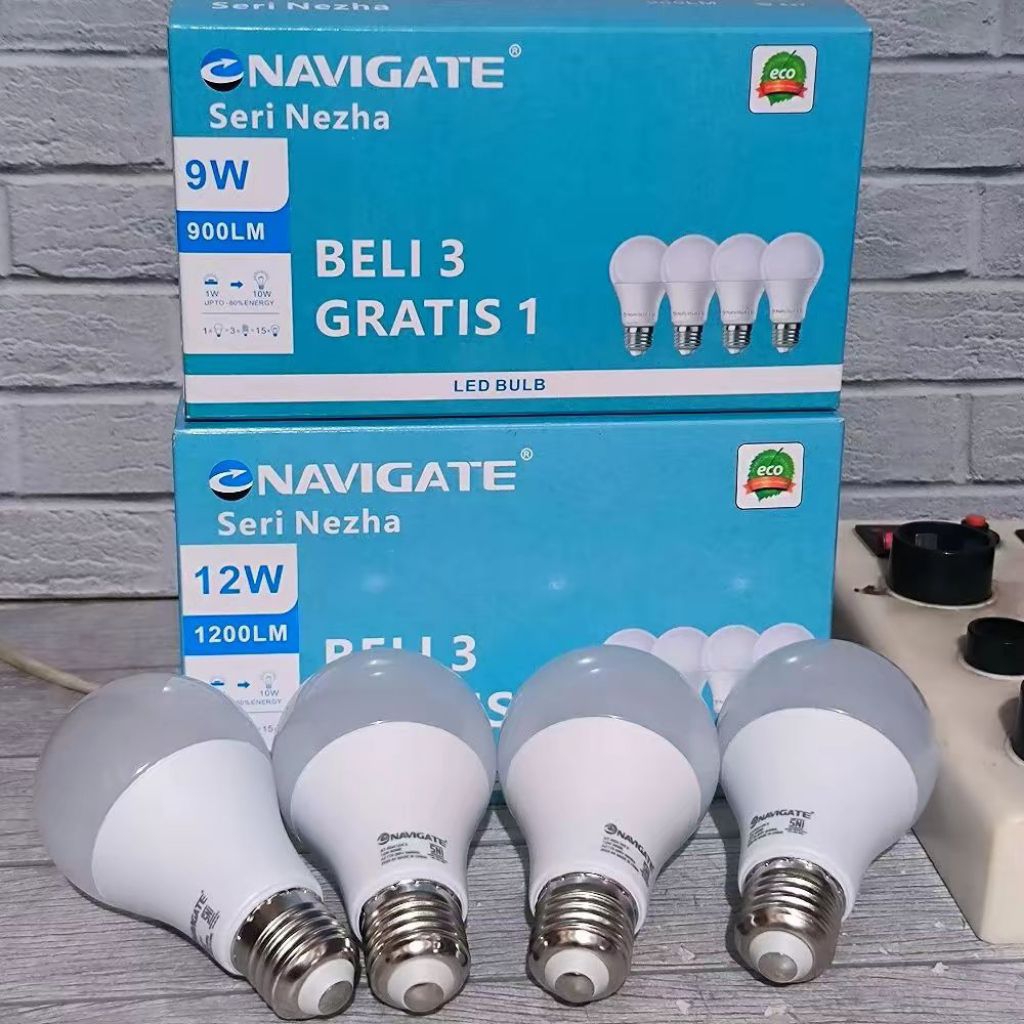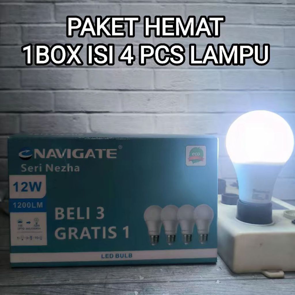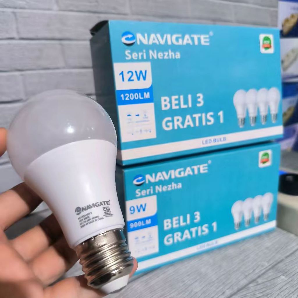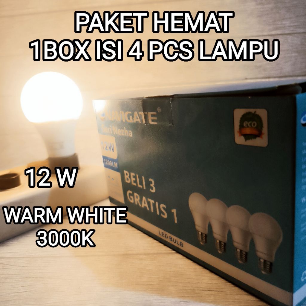 PAKET HEMAT ISI 4 PCS NAVIGATE Lampu bohlam LED hemat energy 9W 12 WATT CAHAYA PUTIH / KUNING WARM WHITE 3000K hemat listrik