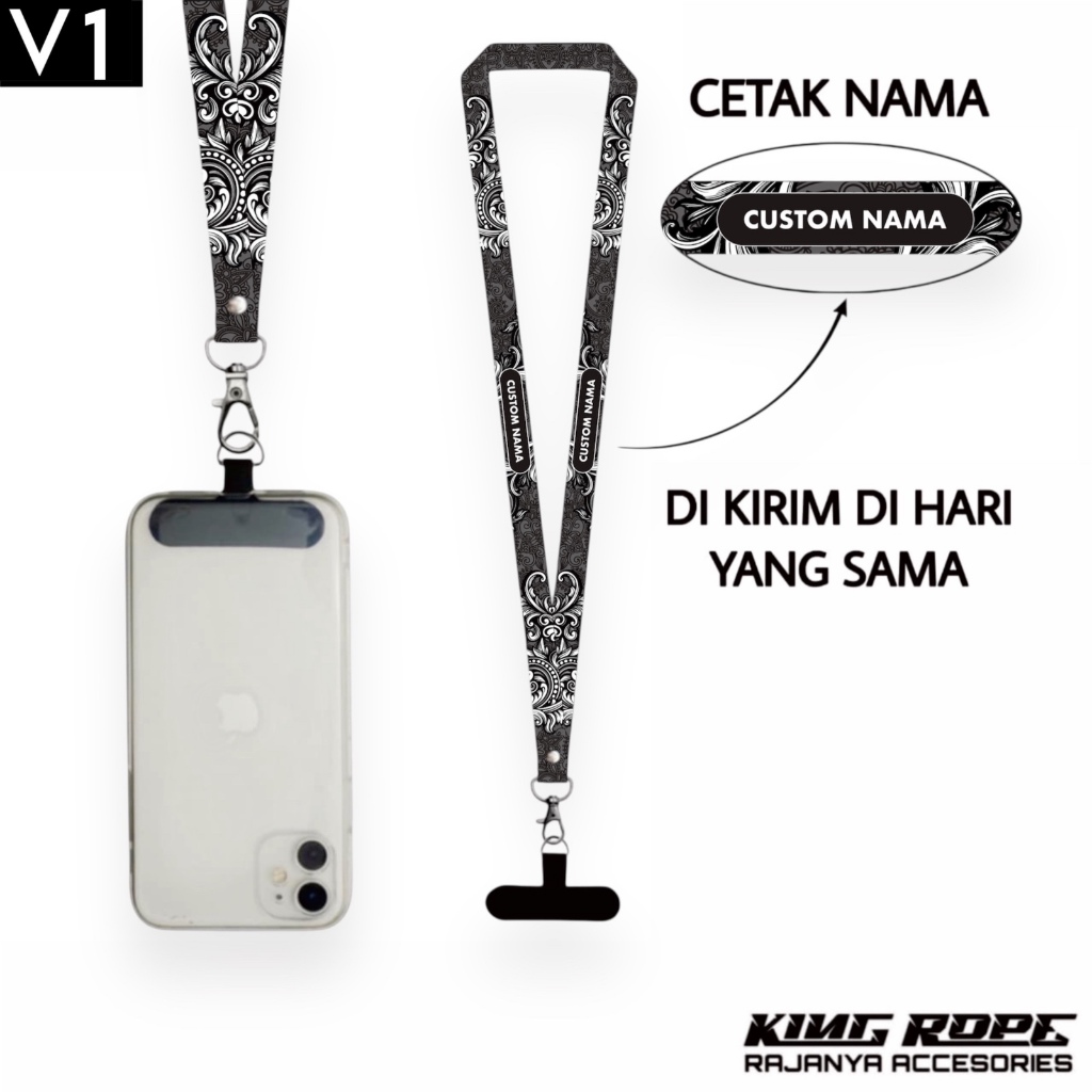 Kingrope Lanyard Hp Custom Nama Batik Series Tali Gantungan Handphone 1,5cm / Gantungan Tali Hp Portable