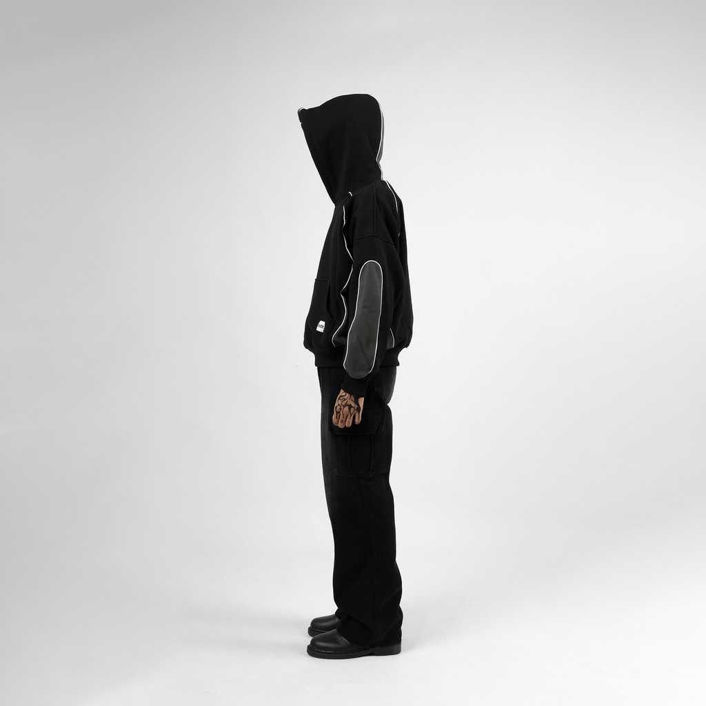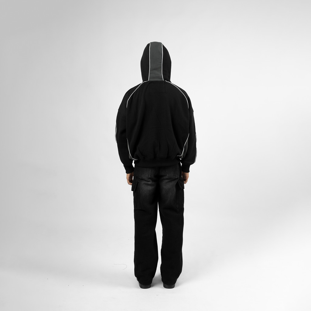 Hlpd Weirdworld Jaket Hoodie Boxy Kombinasi Pria Wanita Sweater Valez - Polos Black