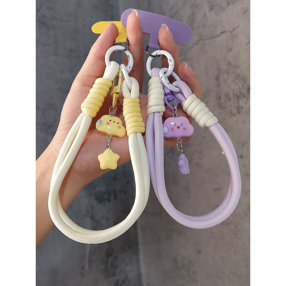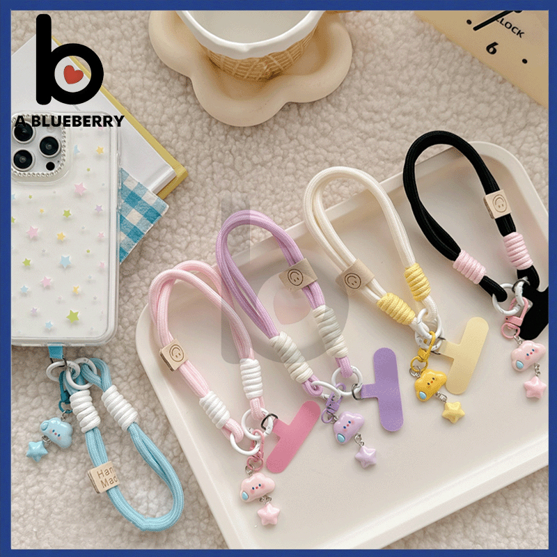 A BLUEBERRY Gantungan HP Tali Tangan Motif Bintang Awan Aksesoris Handphone Lucu untuk Wanita, Lanyard Pendek Anti Selip liontin Gantungan Kunci Tali HP String