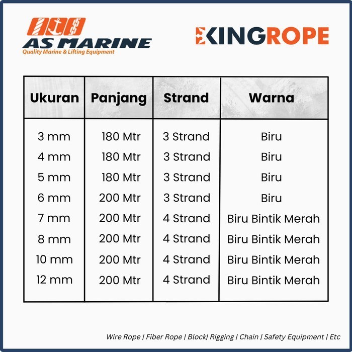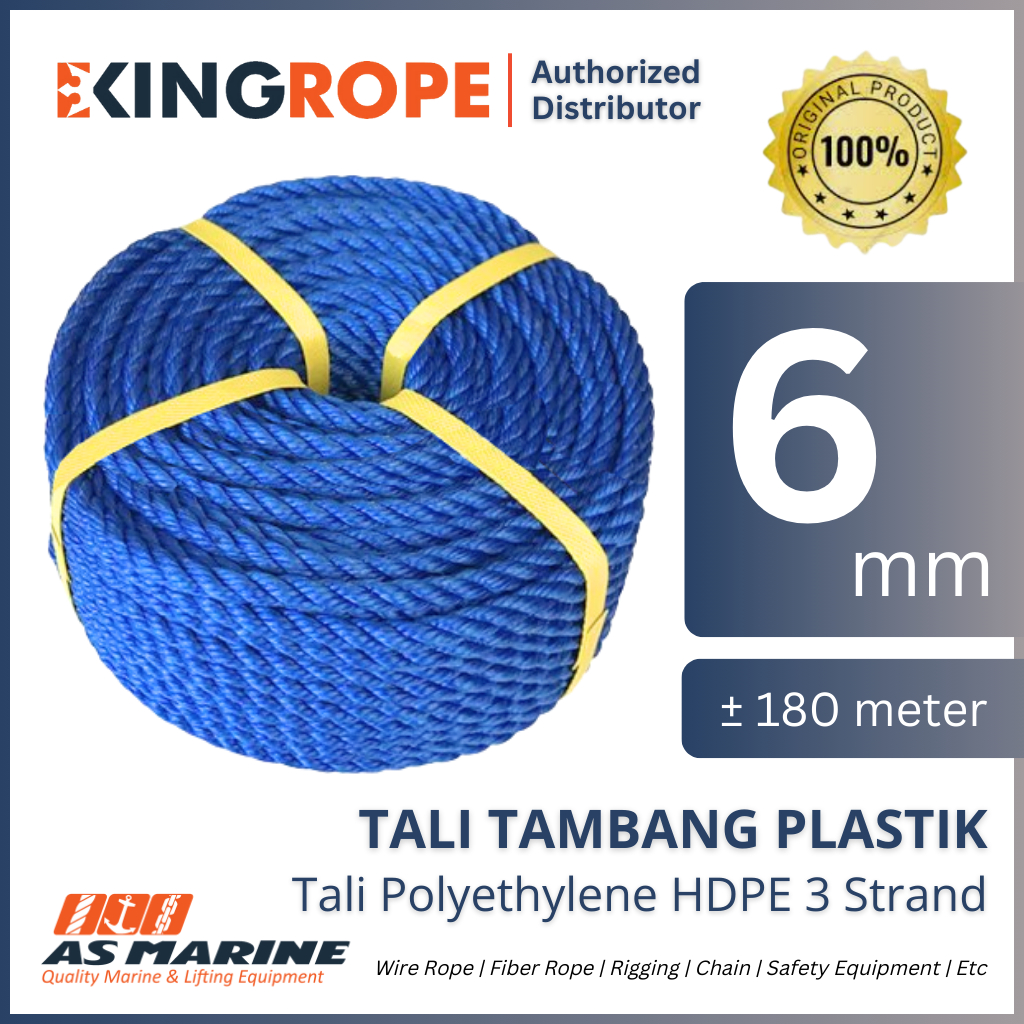 Tali Tambang Plastik / Plastic Rope HDPE Polyethylene 6 mm x 200 meter +/- 3.6 kg u 3 Strand KINGROPE -