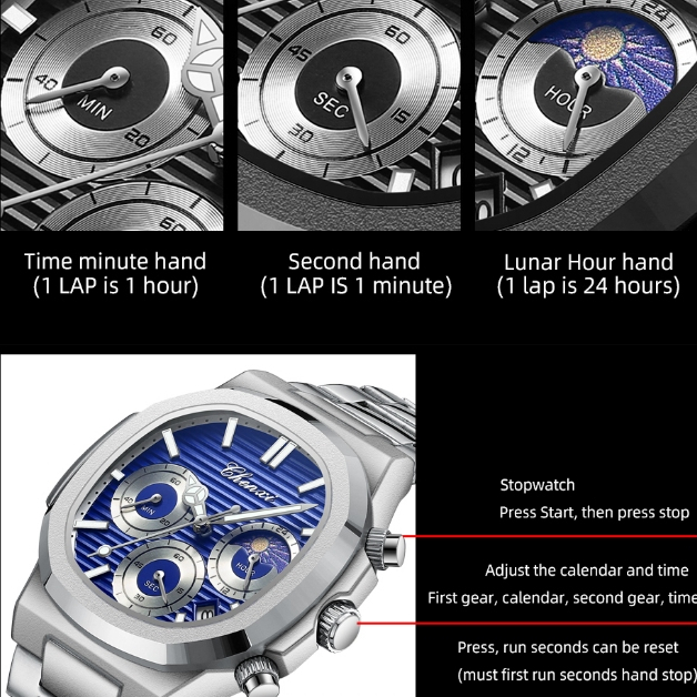 Indoshopwatches Jam Tangan Pria Multifungsi Kalender Chenxi Cx-922 Chronograph Quartz Luminos 43 Mm