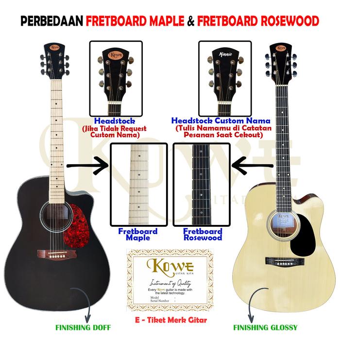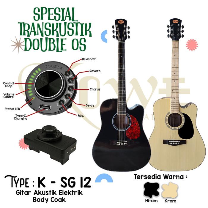 GITAR KOWE TRANSKUSTIK SERI K - SG 12 STANDAR BODY COAK BONUS LENGKAP - HITAM COAK MAPLE, PAKET AKUSTIK