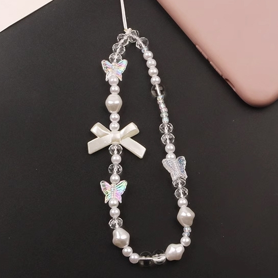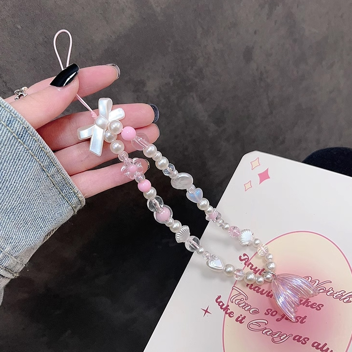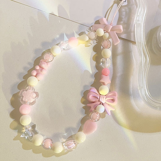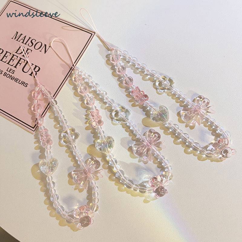 Korea Transparant Love Heart Bow Bracelet Aksesoris Tali Tali Ponsel Universal Kartun Gelang Beruang Lucu Rantai Manik-manik Gantungan Kunci Lanyard Gantungan Kunci-Win