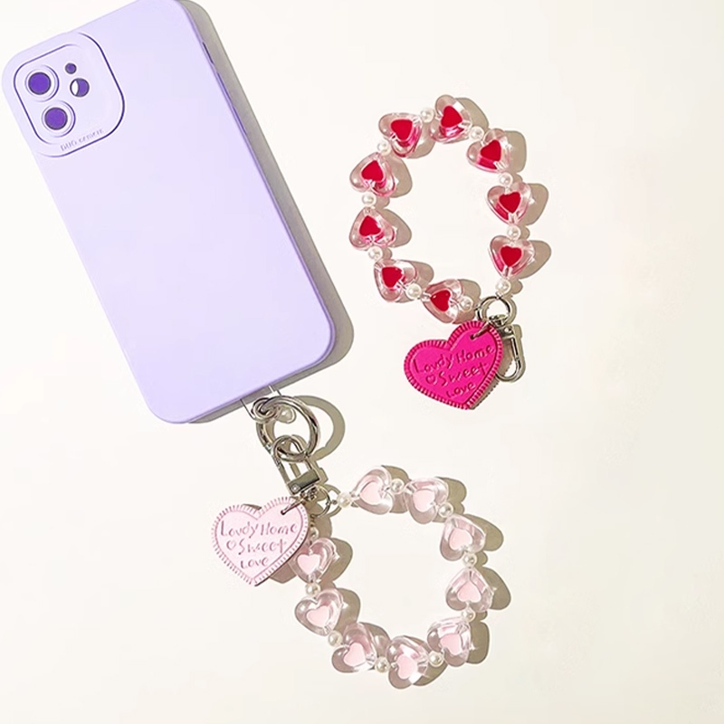 Ins Kreativitas Tali Hp Gantungan Hp Mode Transparan Cinta Strap Phone Aesthetic Tali Lanyard Hp Aksesoris Tas-Fee