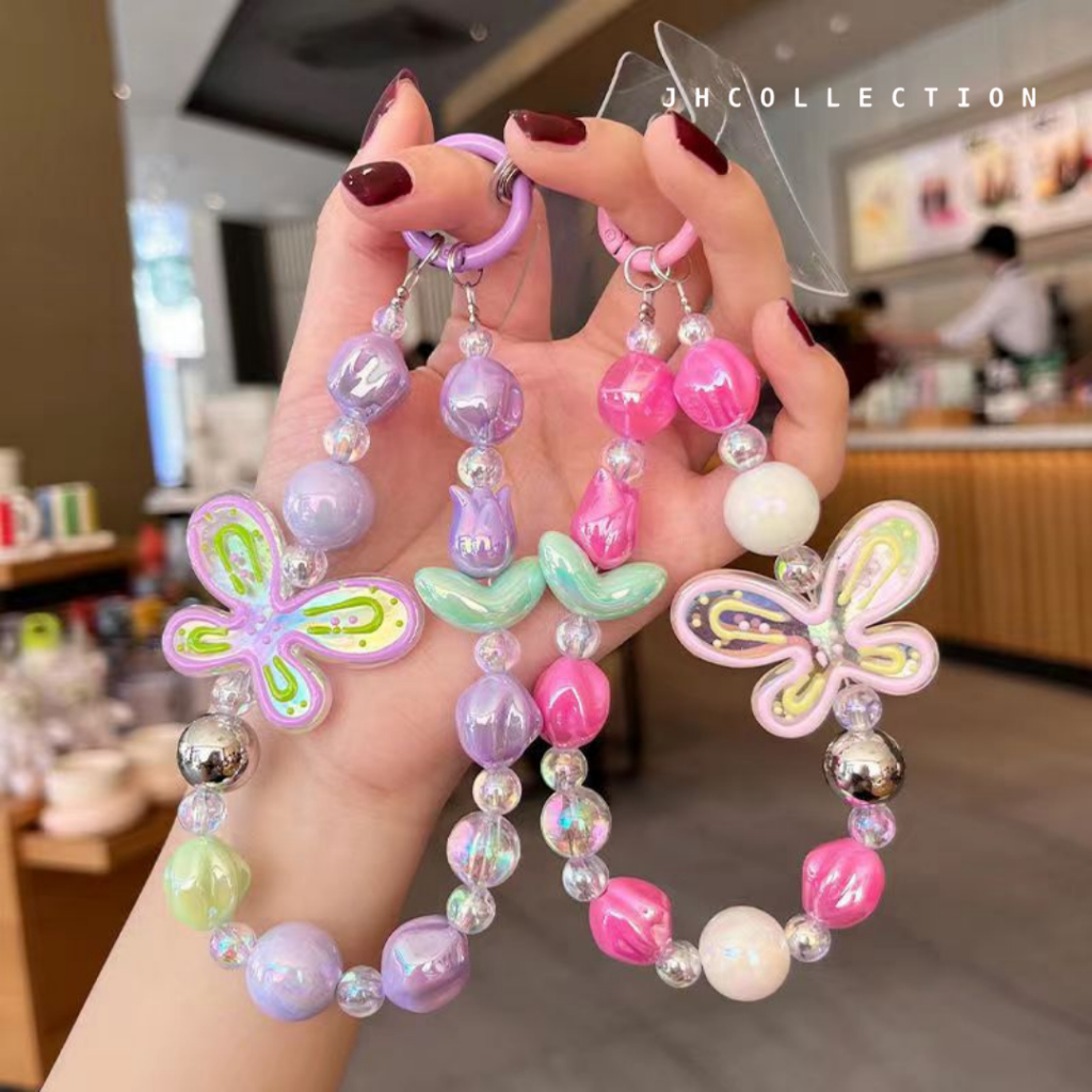 Phone Strap Ponsel Butterfly Warna Liontin Tali Gantungan HP Universal Gantungan Tas Aksesoris