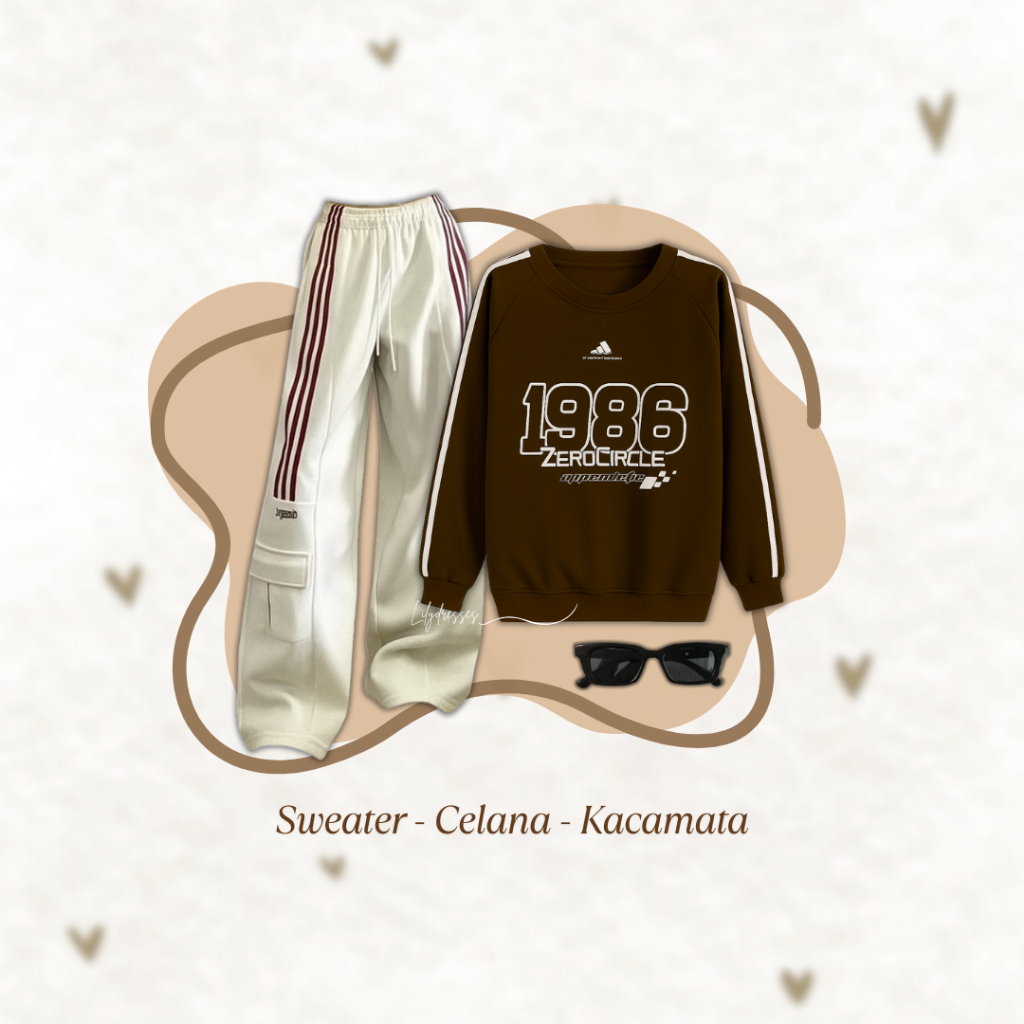 Lilydresses - 3in1 Set Ootd Korean Style Outfit Skena Kalcer l Sweater - Celana - Kacamata l One Set Wanita Kekinian - A