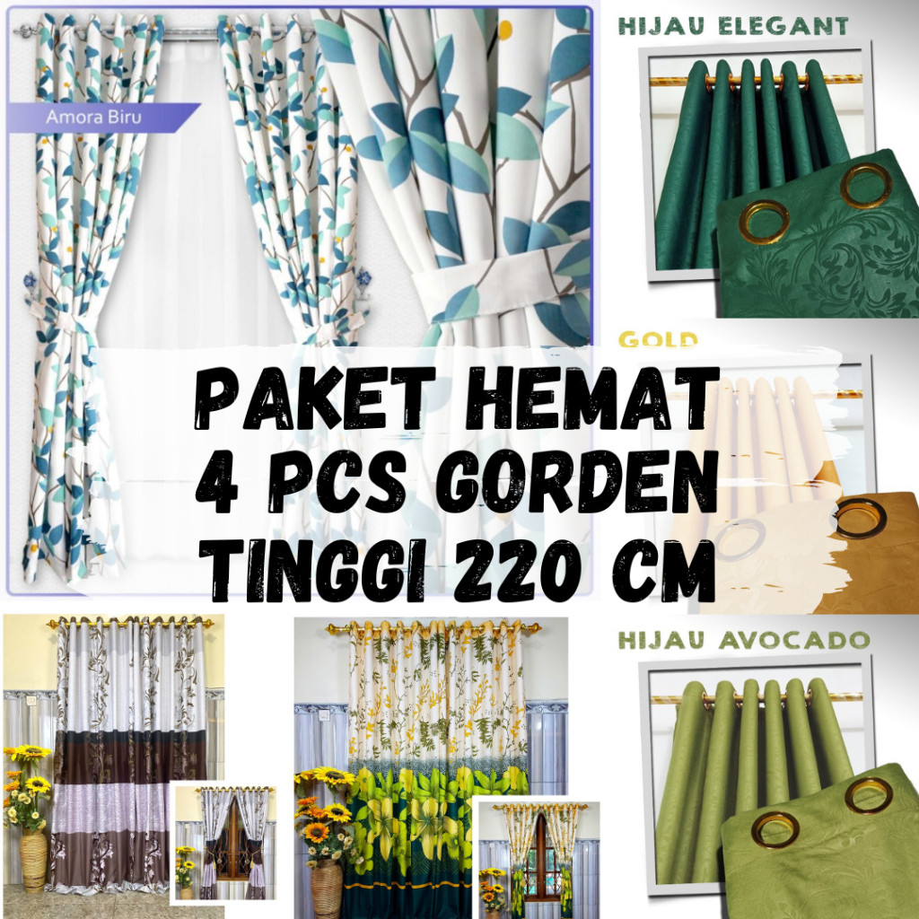 4 PCS Paket Hemat Gorden Jendela Dan Pintu Kamar Minimalis Smokring 10 Ring Lebar 110 Tinggi 220Cm