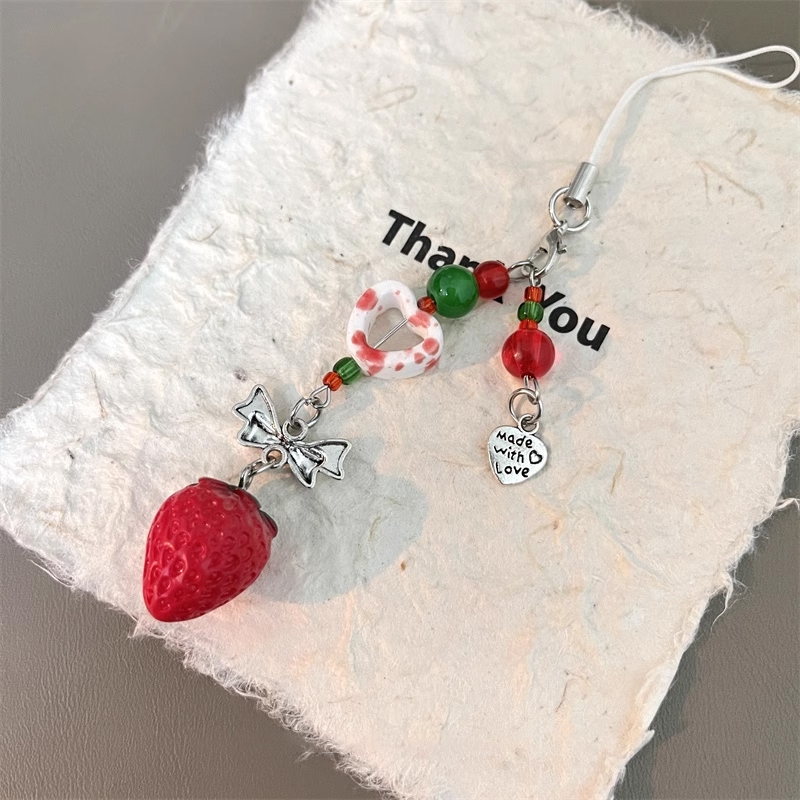 Gantungan Hp Aesthetic Korea Stroberi Apple Phone Strap Hp Cinta Gantungan Kunci Tali Lanyard Hp-fas
