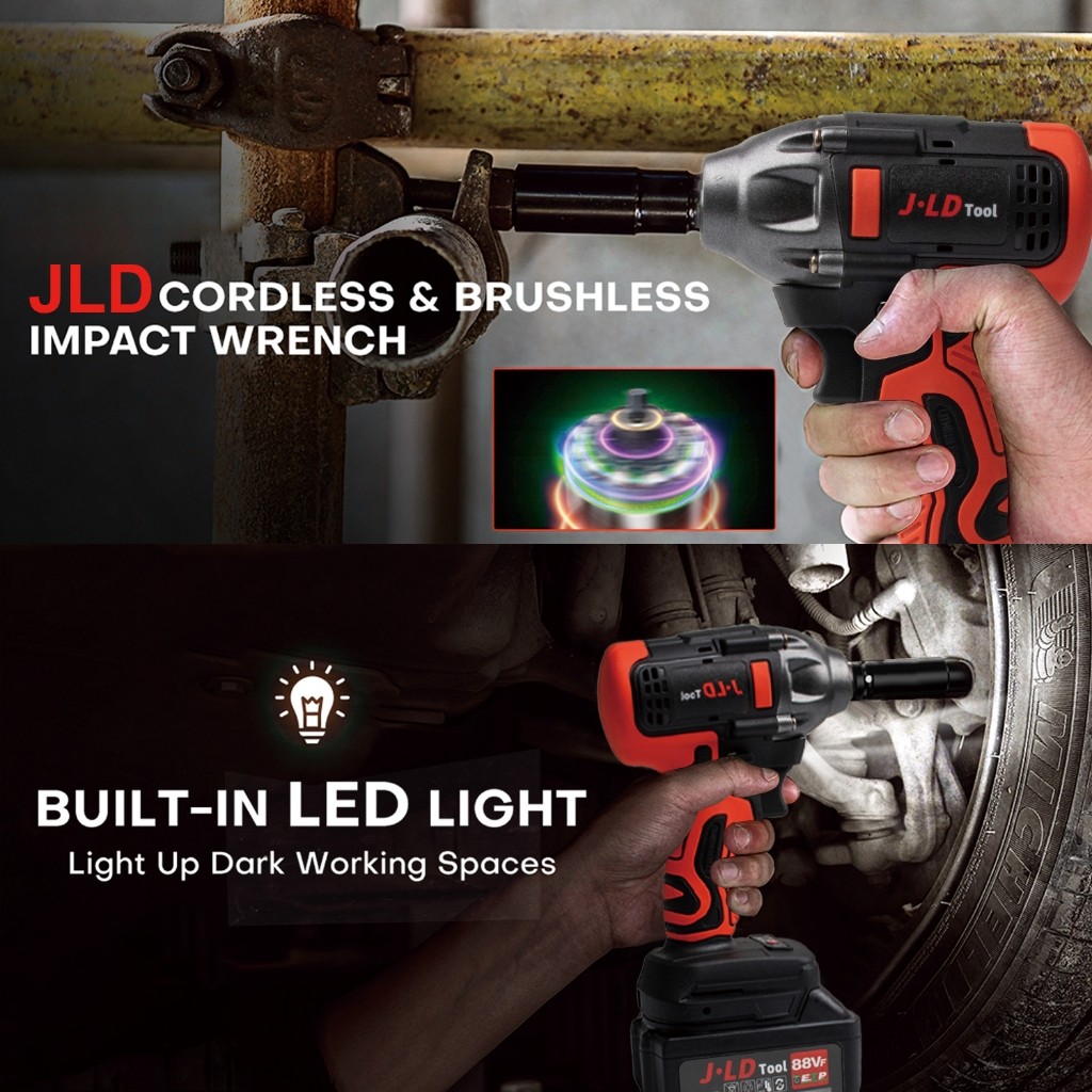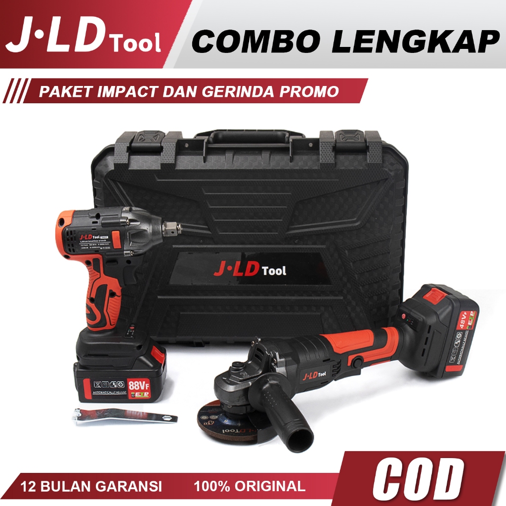 JLD 88Vf Gerinda Dan Impact Wrench Paket Lengkap Brushless 4 inci Angle Grinder 350N.m Impact Baterai Impact Cordless Im