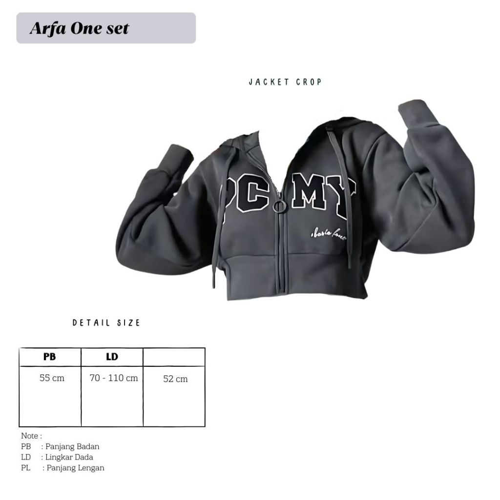 ARFA One Set 2in1 Kekinian (Jaket Sweater Crop PCMY + Celana Cargo Fleece) Setelan Outfit Remaja Kalcer OOTD Streetwear