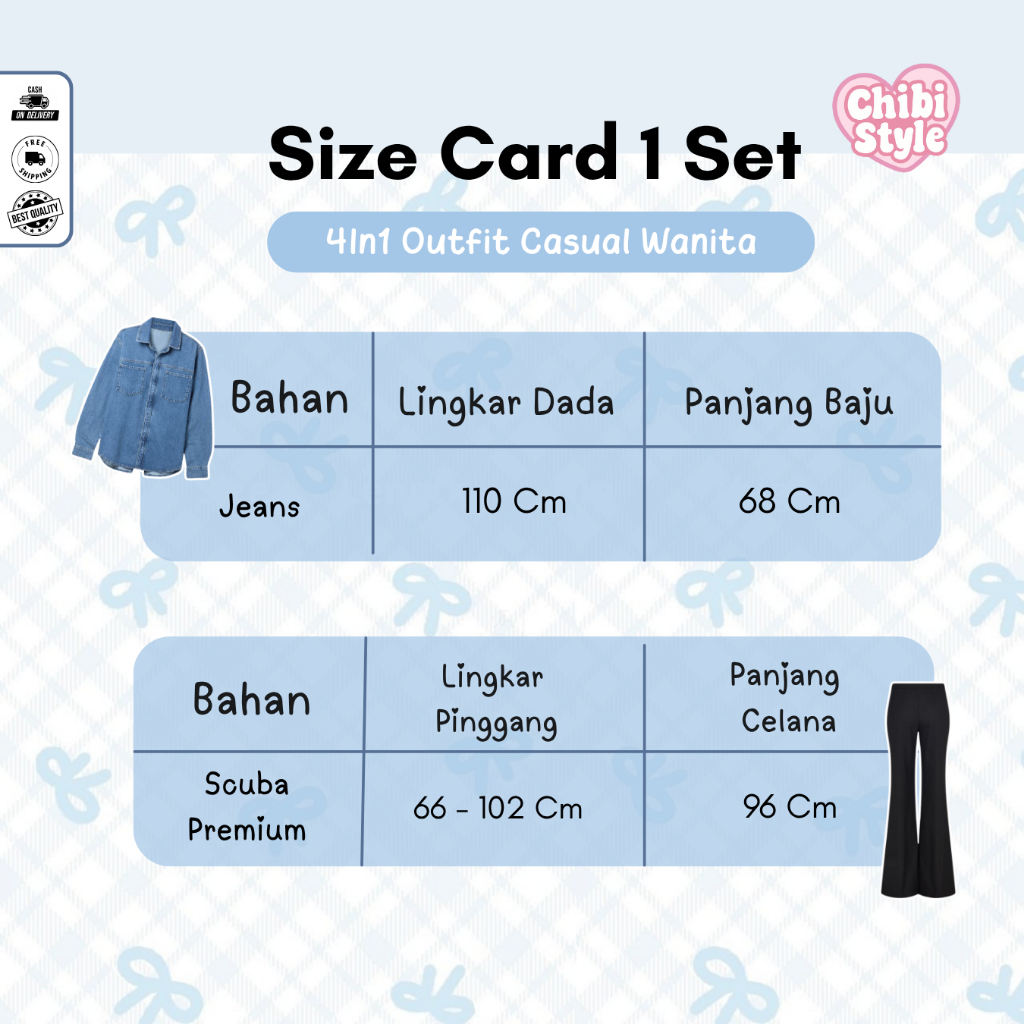 Outfit Wanita Kekinian One Set | Hijab Bella, Kemeja Denim, Celana Cutbray | Outfit Kalcer - CS17