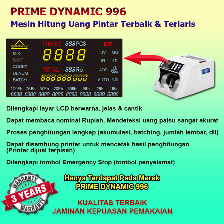 Mesin Penghitung Uang dan Deteksi Keaslian Uang, PRIME DYNAMIC 996, Bill Counter Prime Dynamic 996 Mesin Hitung Uang, Mu