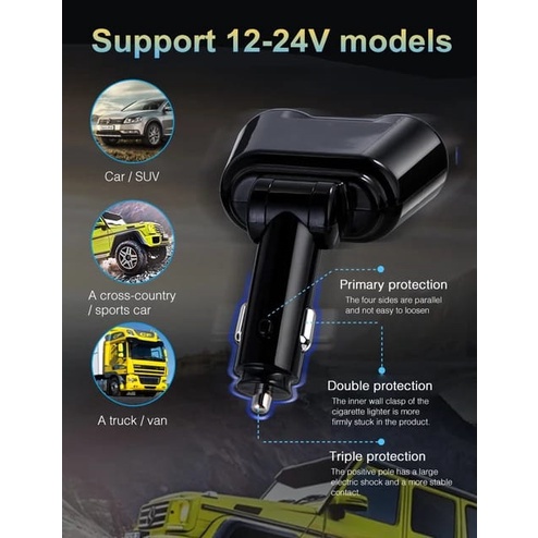 [PROMO] Mipanda 4 in 1 Car Charger Cas Mobil 3.1A Fast Charging dengan Monitor Voltage 2 Cigarette Lighter Socket