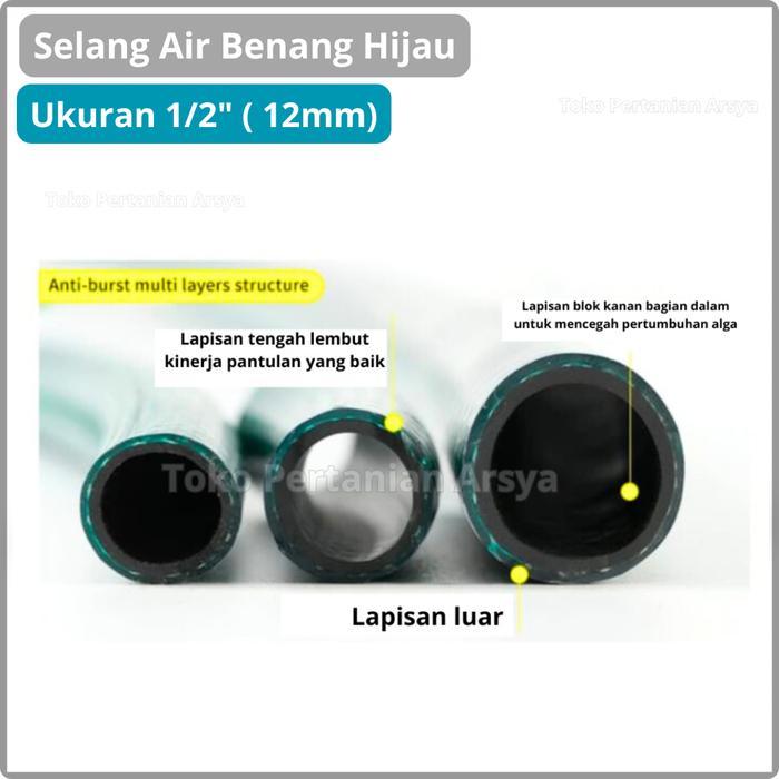 Selang Air Benang Hijau 1/2" ( 12mm) Permeter Slang Air Cuci Motor - Selang Anti Lumut