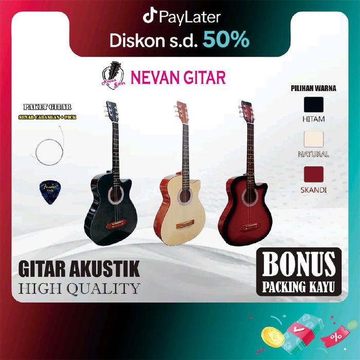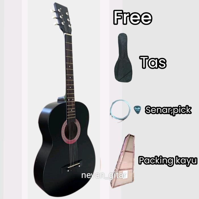 GITAR AKUSTIK PEMULA (PACKING KAYU) GITAR MURAH#GITAR ori KAYU - BLACK, GITAR+ BONUS