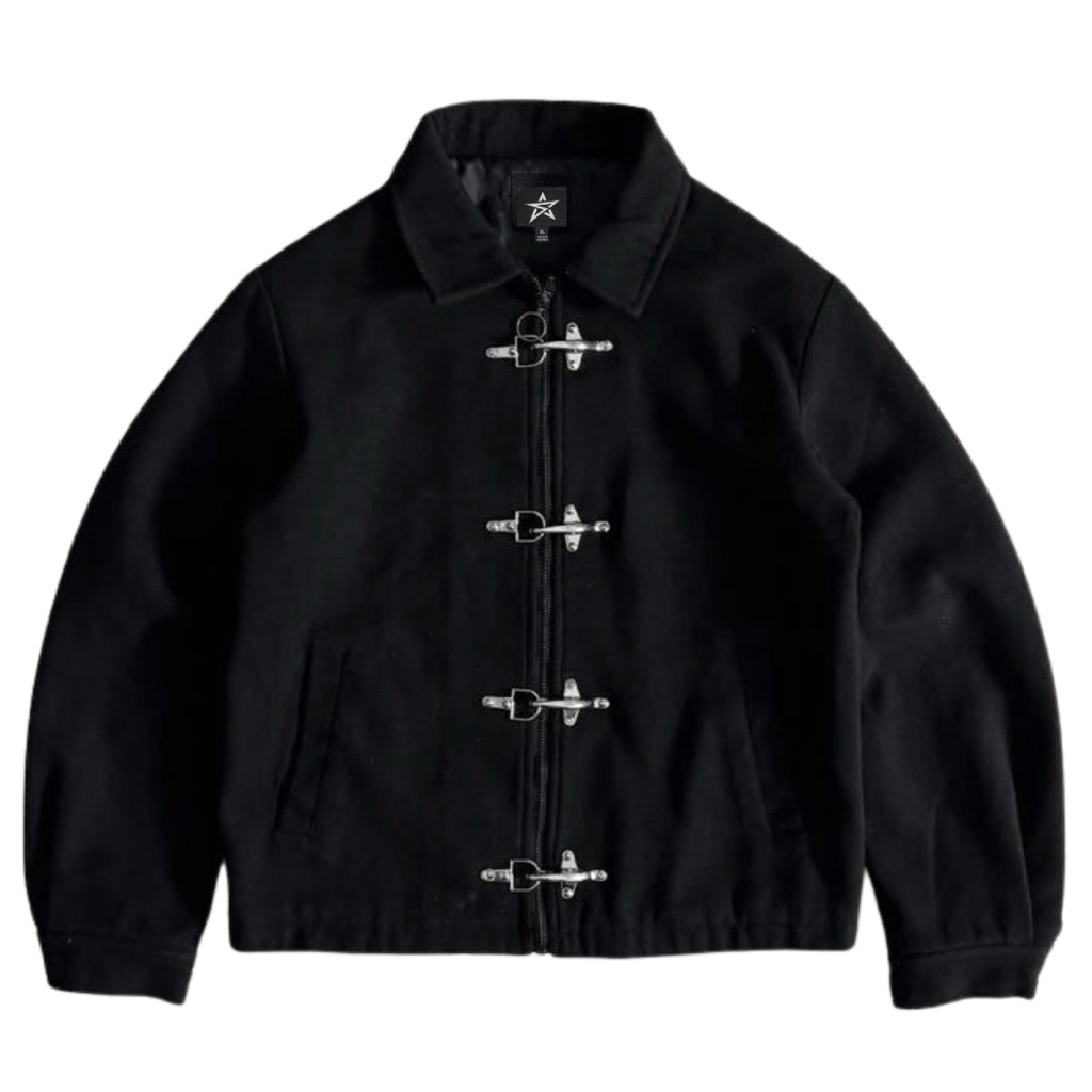Sai - Corazon Fireman Clasps Style Work Jackets Canvas Boxy Outer Jacket Canvas