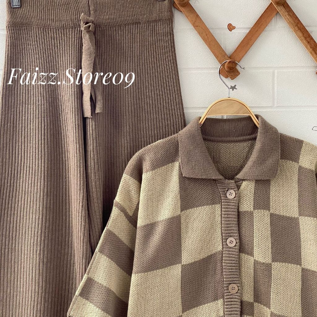 Oneset Knitwear Outfit Fuji Setelan Celana Kulot Rajut Wanita Premium Kekinian