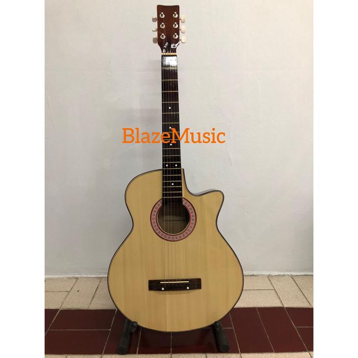 GITAR AKUSTIK PEMULA HITAM MURAH PAKET LENGKAP - PAKET 1, NATURAL