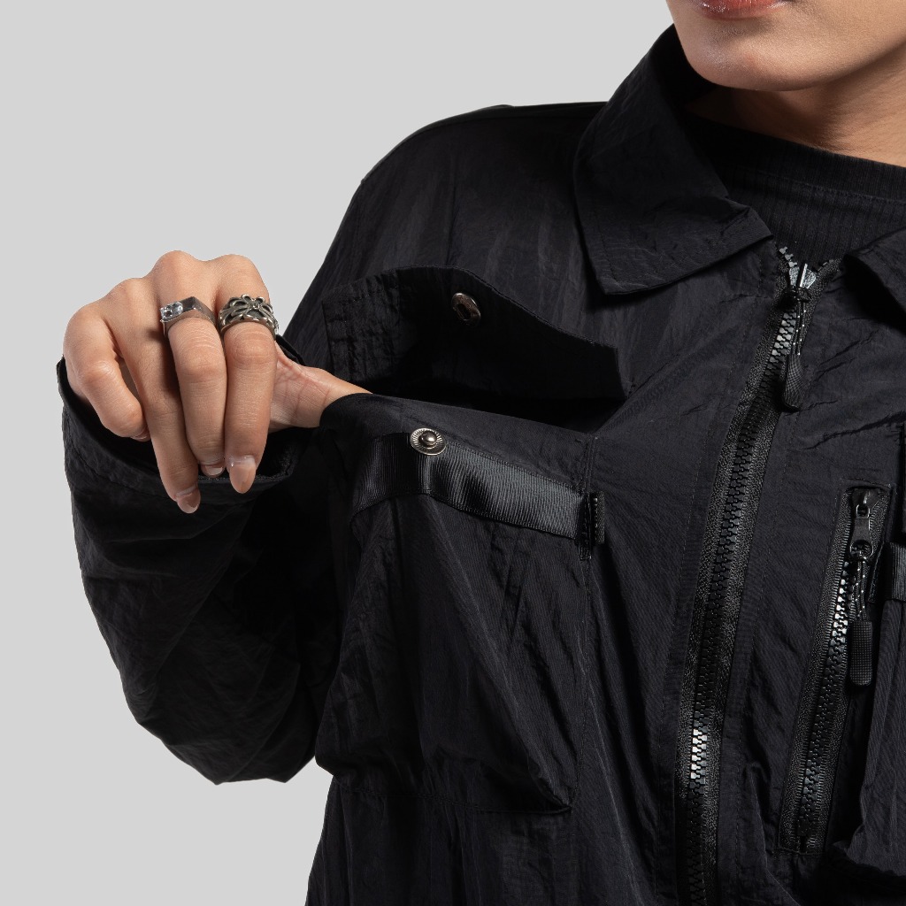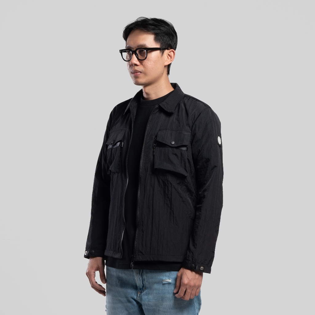 Elthree Company Jaket Overshirt DRIFTLINE Black Outer Casual Pria Wanita Crinkle Water Reppellent