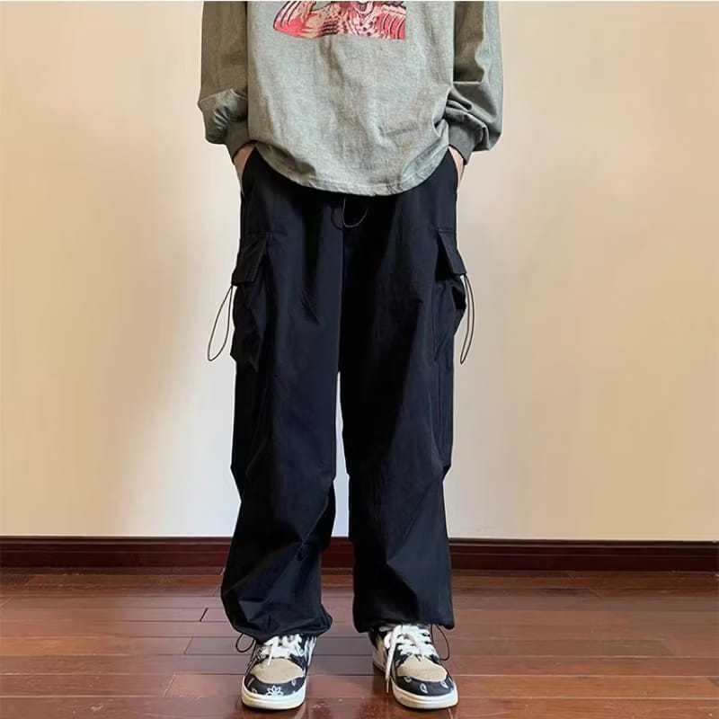 Celana Cargo Panjang Pria Pinggang Karet Tali Serut Skena Kekinian Murah Gratis Ongkir